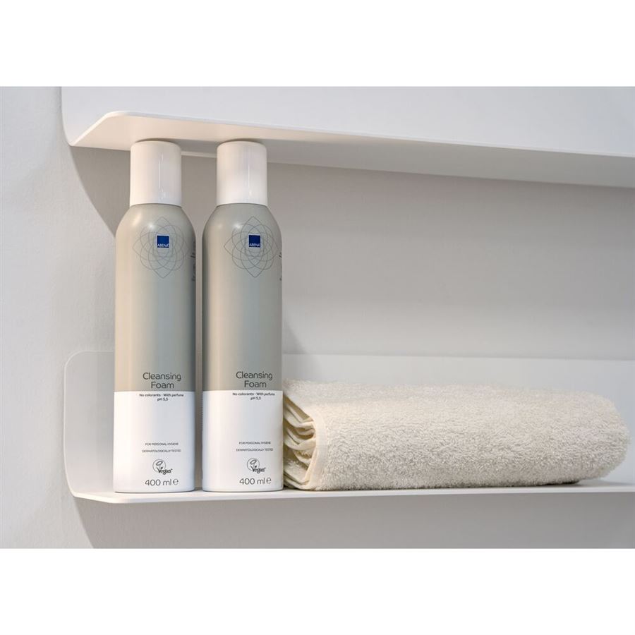 Abena Čisticí pěna s panthenolem a heřmánkem (400 ml). Jemná hygiena a svěžest bez podráždění pokožky.
