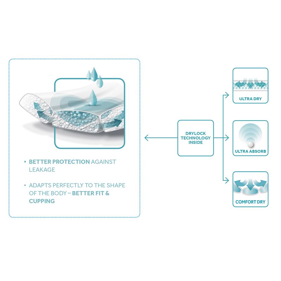 Diskrétní spolehlivé navlékací plenkové kalhotky DAILEE Pant Premium jsou viditelně pohodlné a vysoce účinné díky unikátní technologii DRYLOCK kanálků Comfort Dry. Dermatologicky testované, prodyšné a hedvábně jemné kalhotky s praktickým ukazatelem vlhkosti se lehce přizpůsobí vašemu tělu. Nosí se stejně jako běžné kalhotky. Díky materiálu použitému v kalhotkách pro neutralizaci pachů se budete cítit sebevědomě a dokonale v bezpečí i v noci. Všechny výrobky DAILEE mají dokonalou dvojitou ochranu před únikem moči, která zaručuje maximální funkčnost produktu.