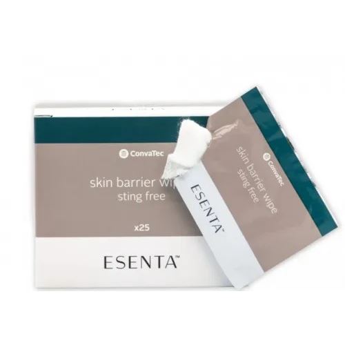 Ochranný film ESENTA™ - Ubrousky ESENTA™ vytvoří prodyšný film, který zajistí ochranu kůže a zvýší přilnavost pomůcky. Velmi rychle zasychají a práce s nimi je snadná. Oproti ubrouskům ConvaCare® jsou sušší, protože jsou na bázi silikonu. Zároveň neobsahují alkohol.