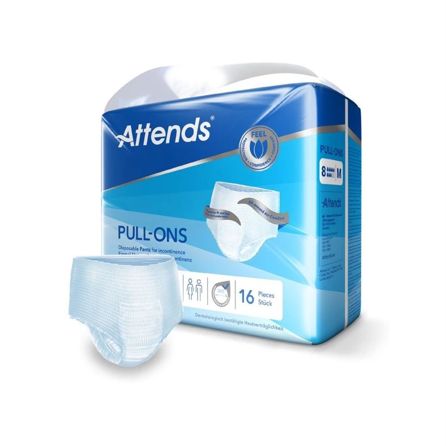 Představujeme navlékací kalhotky Attends Pull-Ons Unisex, které poskytují spolehlivou ochranu a maximální pohodlí pro muže i ženy. Tyto kalhotky jsou ideální volbou pro osoby s lehkou až střední inkontinencí, které hledají diskrétní a efektivní řešení pro každodenní nošení.