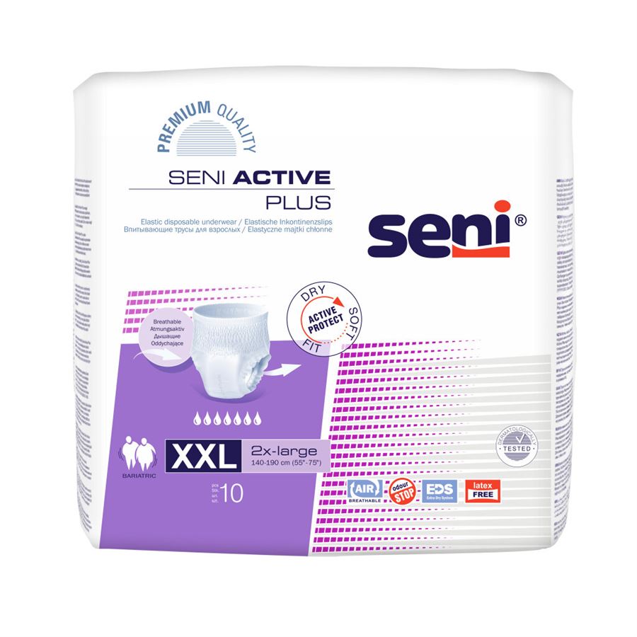 Absorpční kalhotky na jedno použití Seni Active Plus, které se oblékají jako běžné prádlo, představují unikátní řešení pro aktivní lidi, kteří oceňují pohodlí a pocit bezpečí. Seni Active Plus zajišťují: