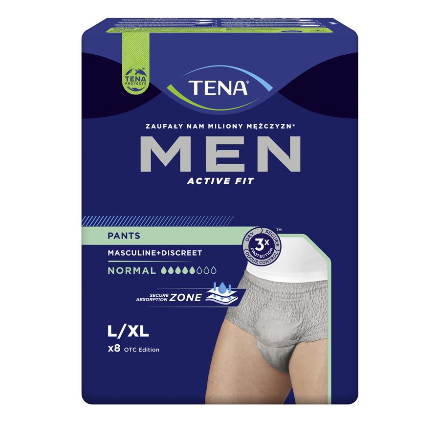 Výhody inkontinenčního spodního prádla TENA Men• Vypadá úplně jako běžné pánské spodní prádlo• Absorpční spodní prádlo je navrženo tak, aby respektovalo anatomii mužského těla• Vysoce absorpční jádro spolehlivě pohltí tekutinu a zadrží ji uvnitř• Dermatologicky testované a nedráždí pokožku• Neutralizátor zápachu pomáhá eliminovat nepříjemné pachy