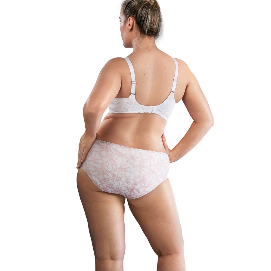 Absorpční spodní prádlo TENA Silhouette Plus Low Waist White pro ženy se střední až těžkou inkontinencí. První bílé inkontinenční prádlo s krajkovým vzorem a sníženým pasem, které vypadá zcela jako běžné spodní prádlo.