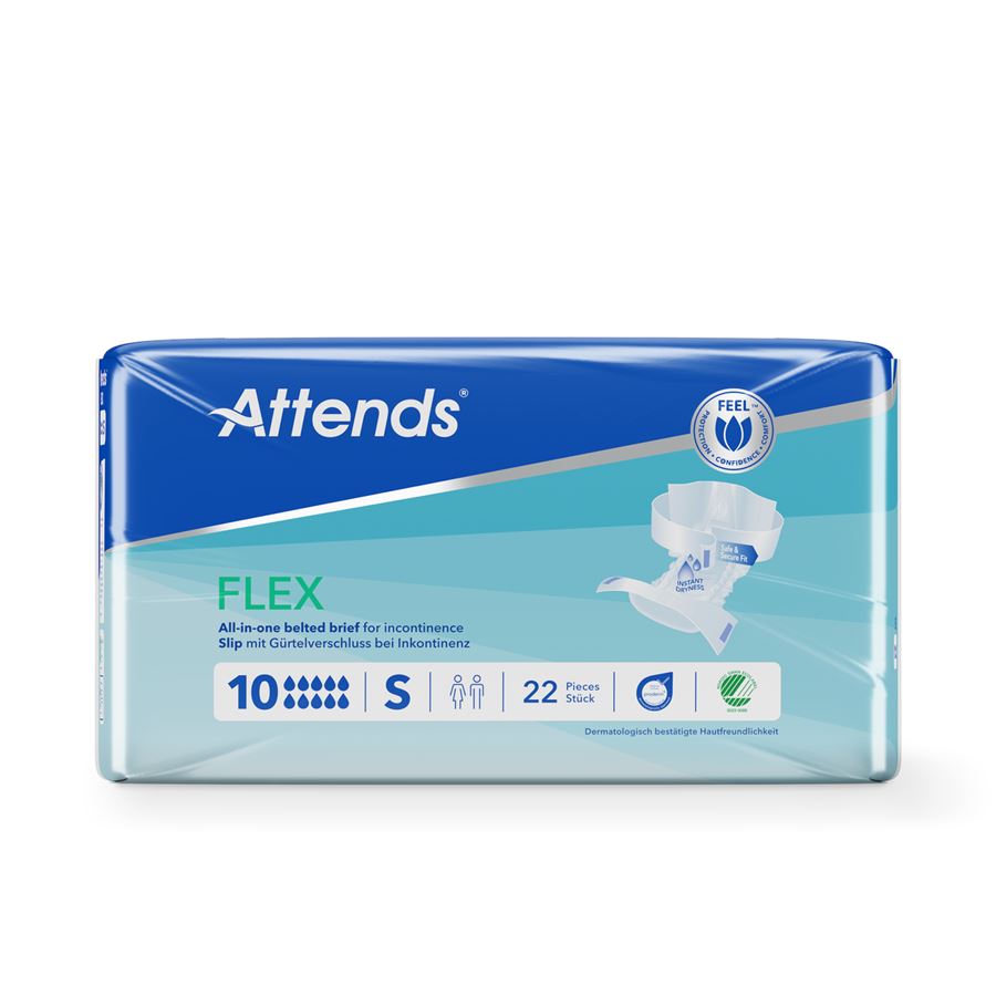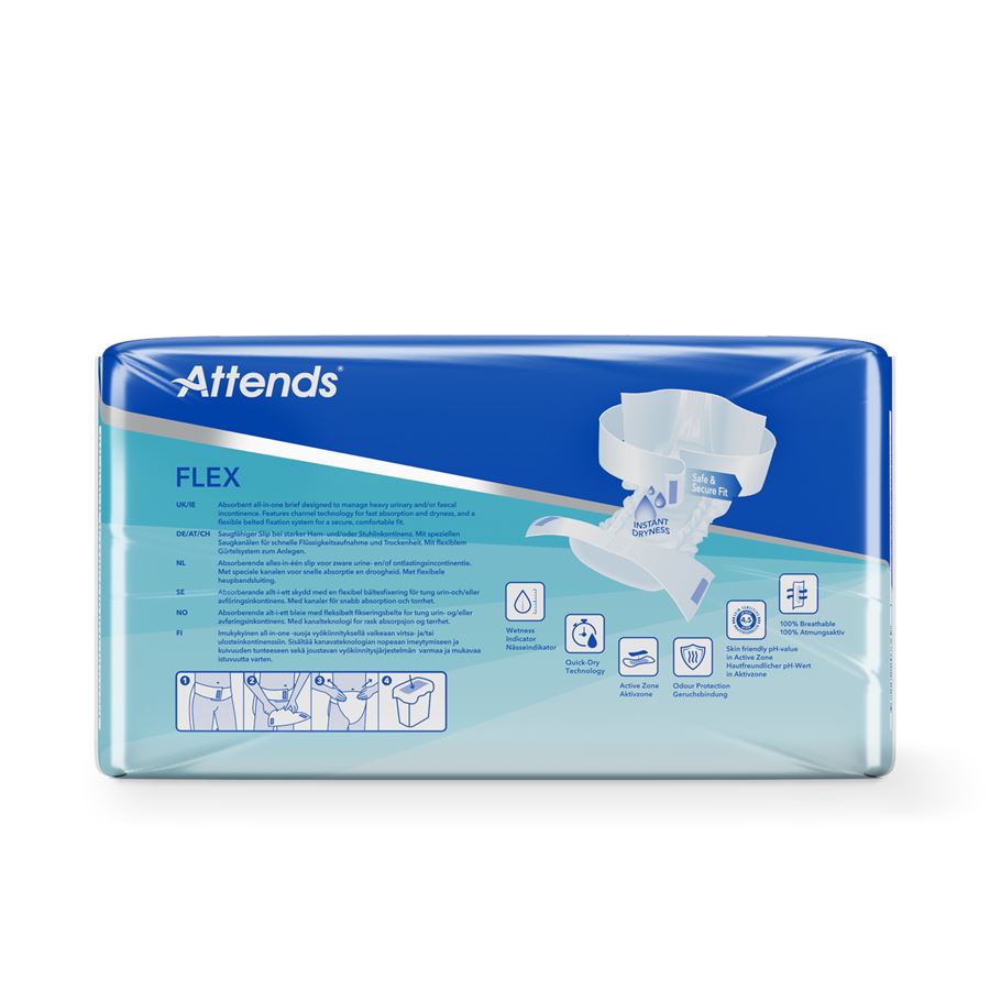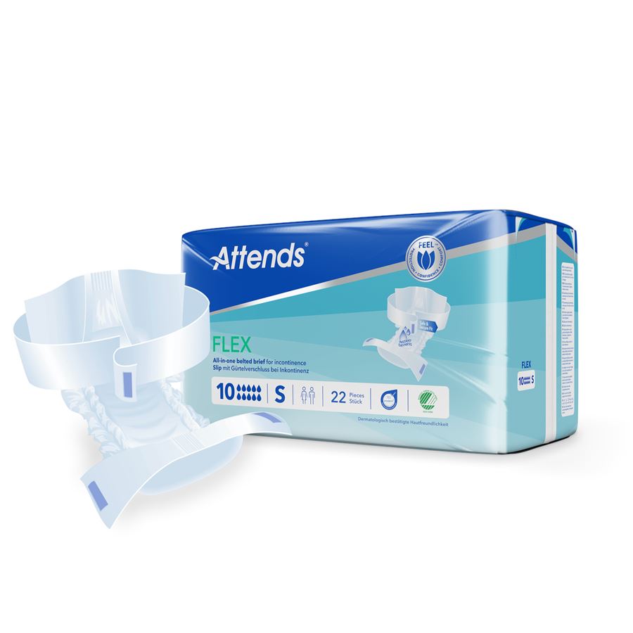 Attends Flex jsou absorpční kalhotky s fixačním pásem na suchý zip, navržené pro maximální pohodlí a ochranu při těžké inkontinenci.