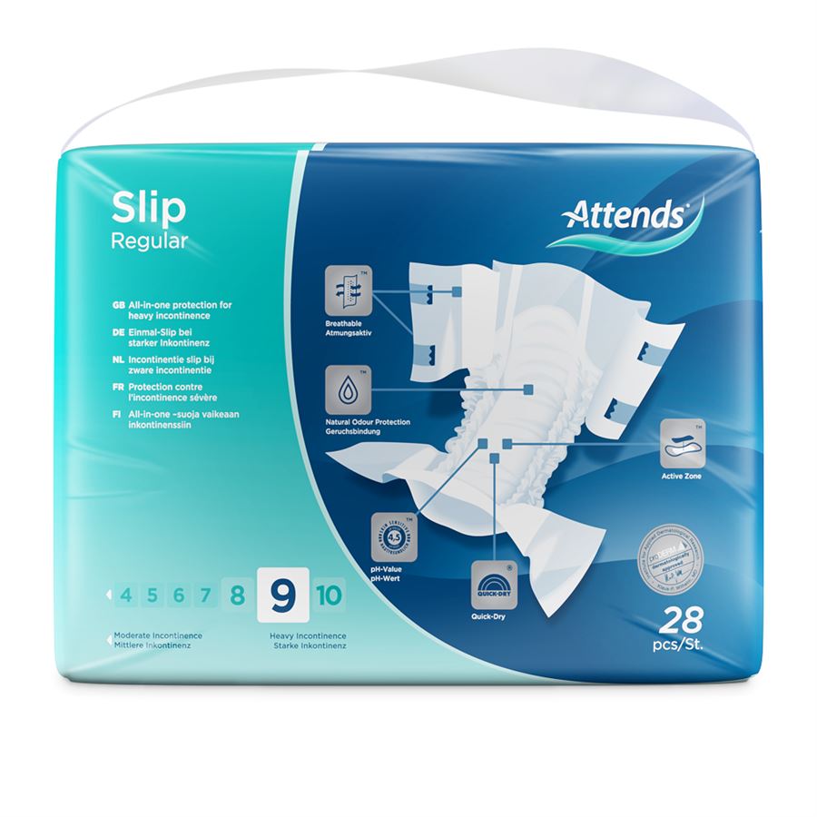 Plenkové kalhotky Attends Slip Regular poskytují efektivní a celkovou ochranu při těžké inkontinenci. Kalhotky jsou anatomicky tvarované a díky tomu umožňují pohodlné nošení. Systém Quick-Dry ® a 3vrstvé savé jádro zaručí pocit suché pokožky .