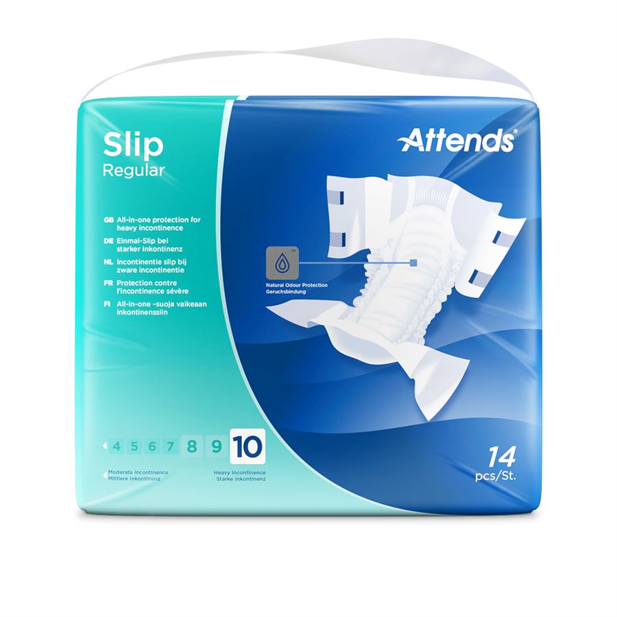 Zalepovací kalhotky Attends Regular jsou vhodné pro muže i ženy, kteří potřebují spolehlivou a diskrétní ochranu během dne i noci. Jsou ideální pro osoby s omezenou pohyblivostí nebo pro ty, kteří potřebují asistenci při výměně kalhotek.