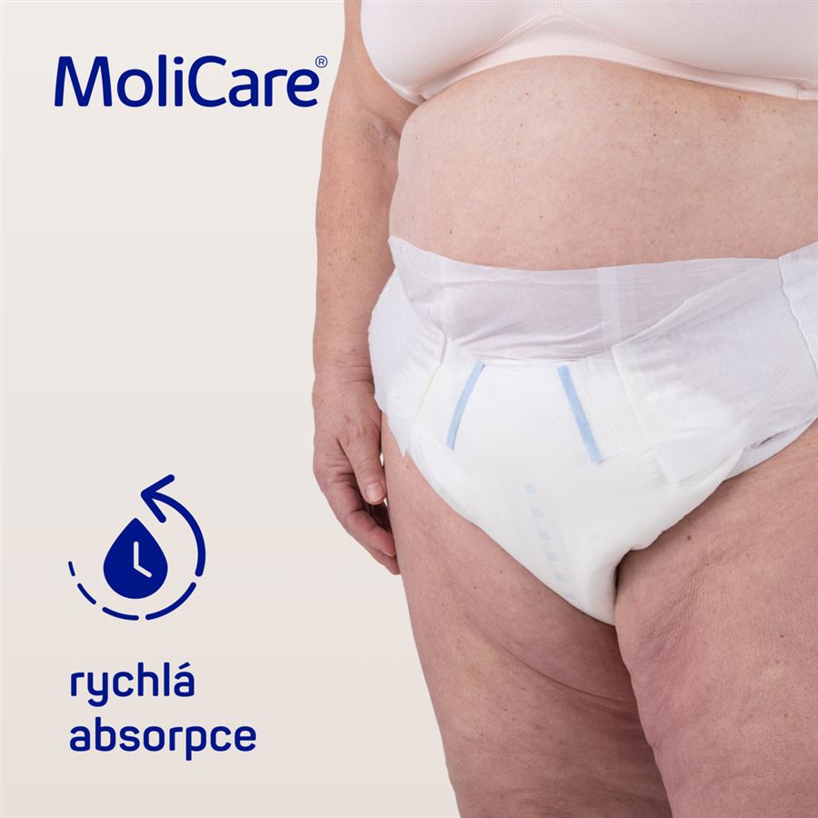 Unikátní zalepovací kalhotky pro dospělé MoliCare Elastic 6 kapek s elastickými bočními pásy pro usnadnění každodenní péče o osobu s těžkou inkontinencí.