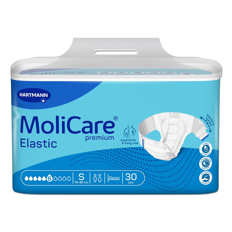 Unikátní zalepovací kalhotky pro dospělé MoliCare Elastic 6 kapek s elastickými bočními pásy pro usnadnění každodenní péče o osobu s těžkou inkontinencí. Vhodné pro použití v případech těžké inkontinence a pro pacienty na lůžku nebo handicapované. Poskytují maximální bezpečnost, jsou vhodné na denní použití.