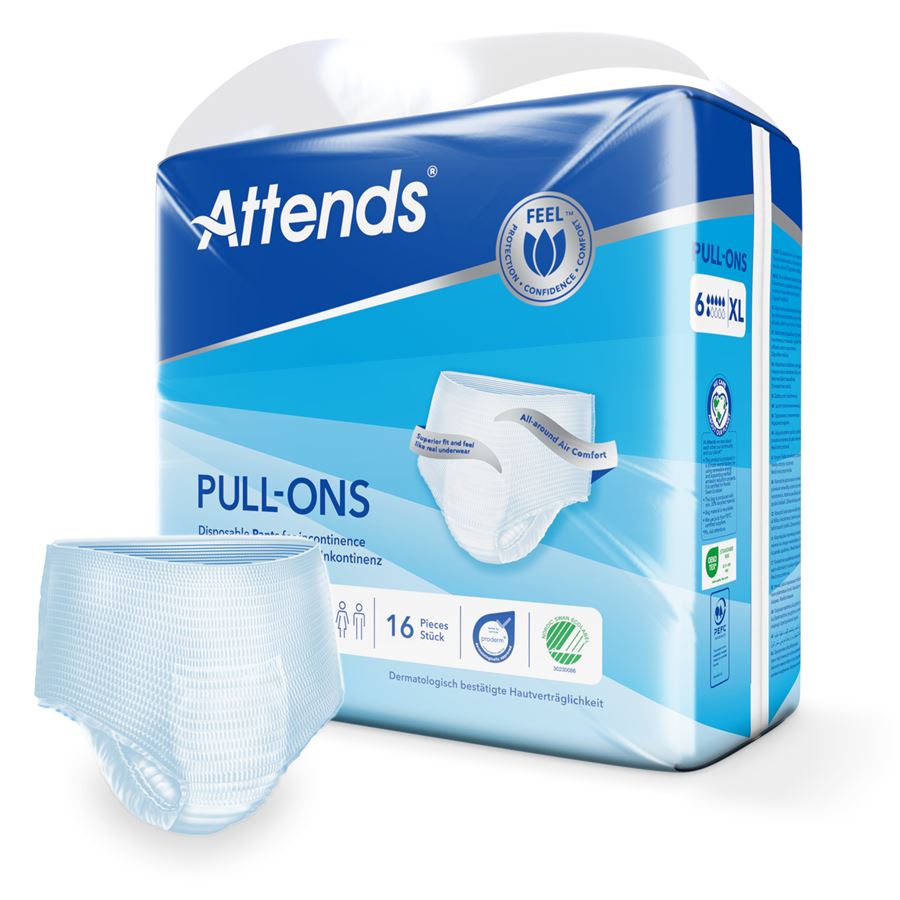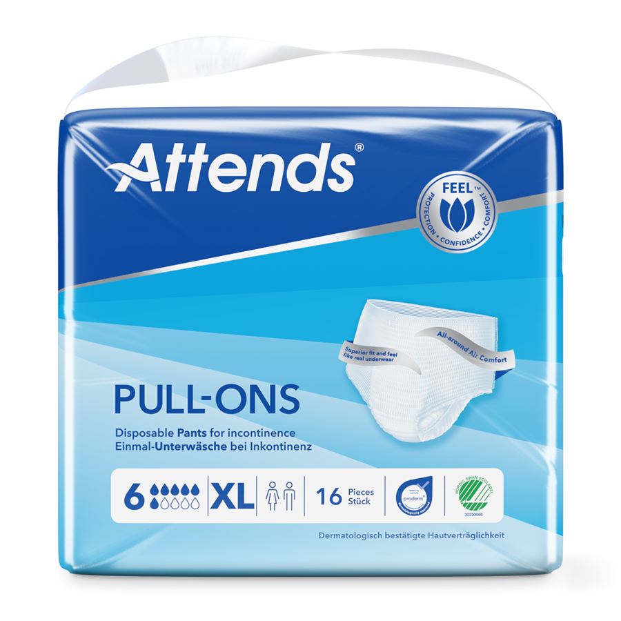 Představujeme navlékací kalhotky Attends Pull-Ons Unisex, které poskytují spolehlivou ochranu a maximální pohodlí pro muže i ženy. Tyto kalhotky jsou ideální volbou pro osoby s lehkou, střední i těžkou inkontinencí, které hledají diskrétní a efektivní řešení pro každodenní nošení. Skvělý tvar Attends Pull-Ons Attends zajišťuje perfektní pohodlí. Vysoce savé jádro chrání před únikem a zápachem, pro aktivní život s pocitem bezpečí.