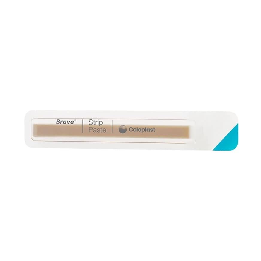 Pasta v proužcích vyplňuje záhyby a vyrovnává povrch kůže pro lepší přilnutí stomické podložky. Pasta v proužcích Brava vyplňuje hlubší záhyby a jizvy, takže se povrch břicha vyrovná a stomická podložka na rovný povrch lépe přilne. Tím pomáhá předcházet podtékání. Pasta v proužcích Brava absorbuje vlhkost z kůže a zlepšuje stav kůže v okolí stomie. Odtrhněte potřebnou délku proužku a vymodelujte jej do potřebného tvaru.