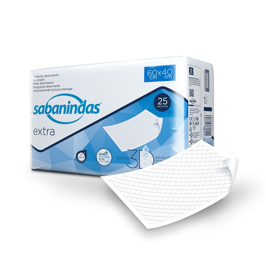 Sabanindas Extra jsou podložky určené pro všechny typy inkontinence, protože absorbují moč, která by mohla uniknout z jakéhokoli jiného absorpčního systému, který pacient nosí.