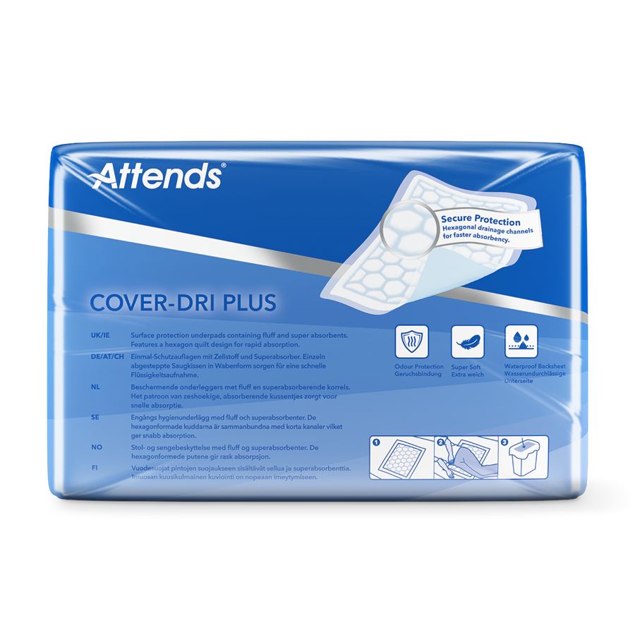 Attends Cover Dri 40x60 Plus jsou vysoce kvalitní jednorázové absorpční pomůcky navržené pro maximální ochranu a pohodlí po celý den. Tyto podložky k dispozici v různých rozměrech, aby zajistily maximální ochranu postelí, židlí, invalidních vozíků a dalších předmětů.