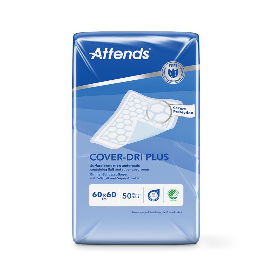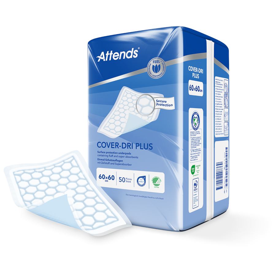 Attends Cover Dri 60x60 Plus jsou vysoce kvalitní jednorázové absorpční pomůcky navržené pro maximální ochranu a pohodlí po celý den. Tyto podložky k dispozici v různých rozměrech, aby zajistily maximální ochranu postelí, židlí, invalidních vozíků a dalších předmětů.