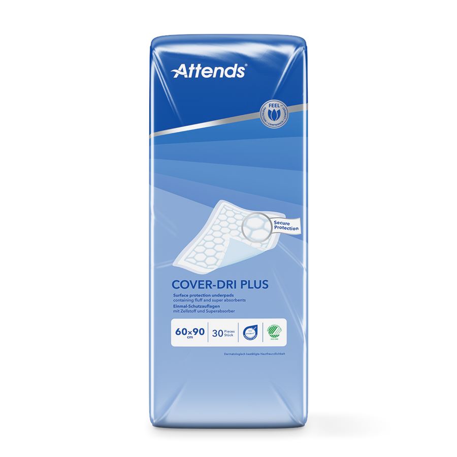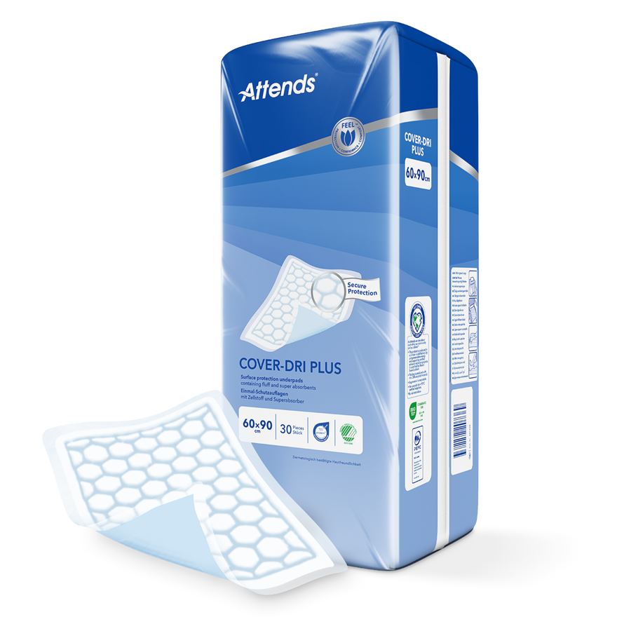 Attends Cover Dri 60x90 Plus jsou vysoce kvalitní jednorázové absorpční pomůcky navržené pro maximální ochranu a pohodlí po celý den. Tyto podložky k dispozici v různých rozměrech, aby zajistily maximální ochranu postelí, židlí, invalidních vozíků a dalších předmětů.