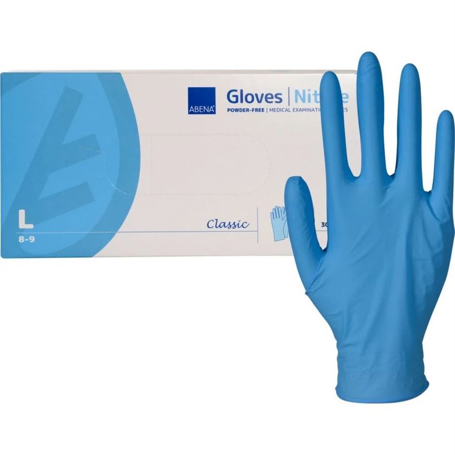 Vyšetřovací nitrilové rukavice Abena Classic, L, modré, nepudrované.