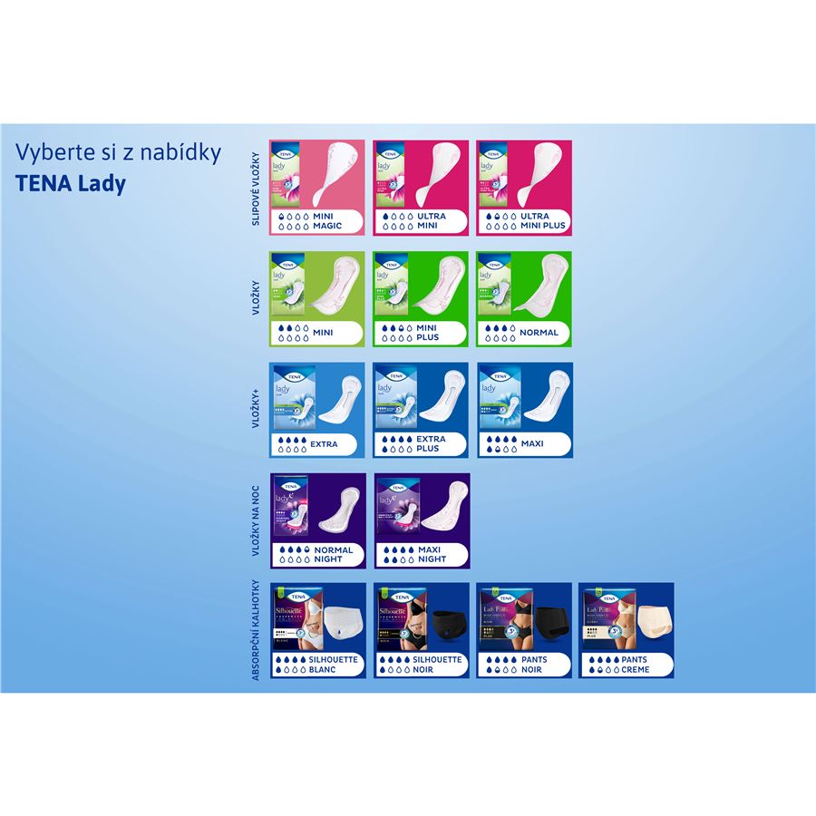 Diskrétní vložky TENA Lady s patentovanou technologií InstaDry™ pro okamžitou absorpci jsou speciálně vyvinuté pro ženy se středním únikem moči.