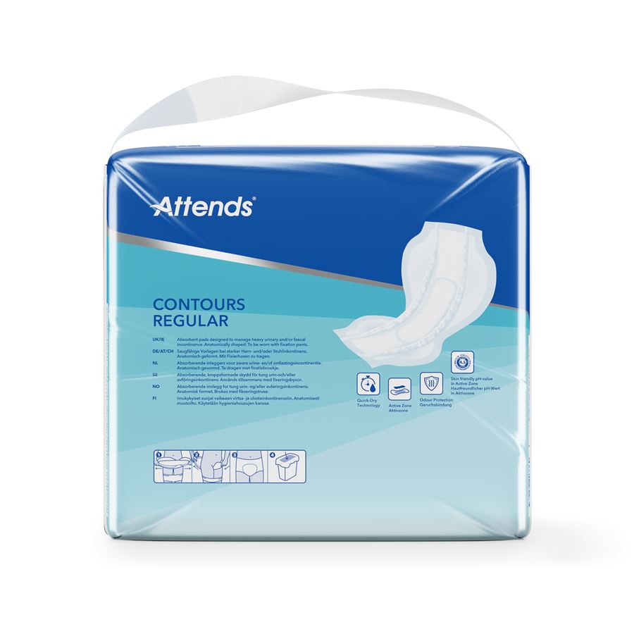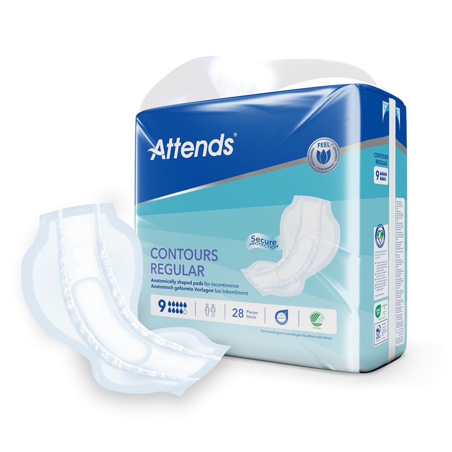 Attends Contours Maxi 9 jsou universální vložné pleny určeny pro osoby s nekontrolovaným únikem moči/stolice a nabízí tak spolehlivou ochranu a komfort při těžké inkontinenci.